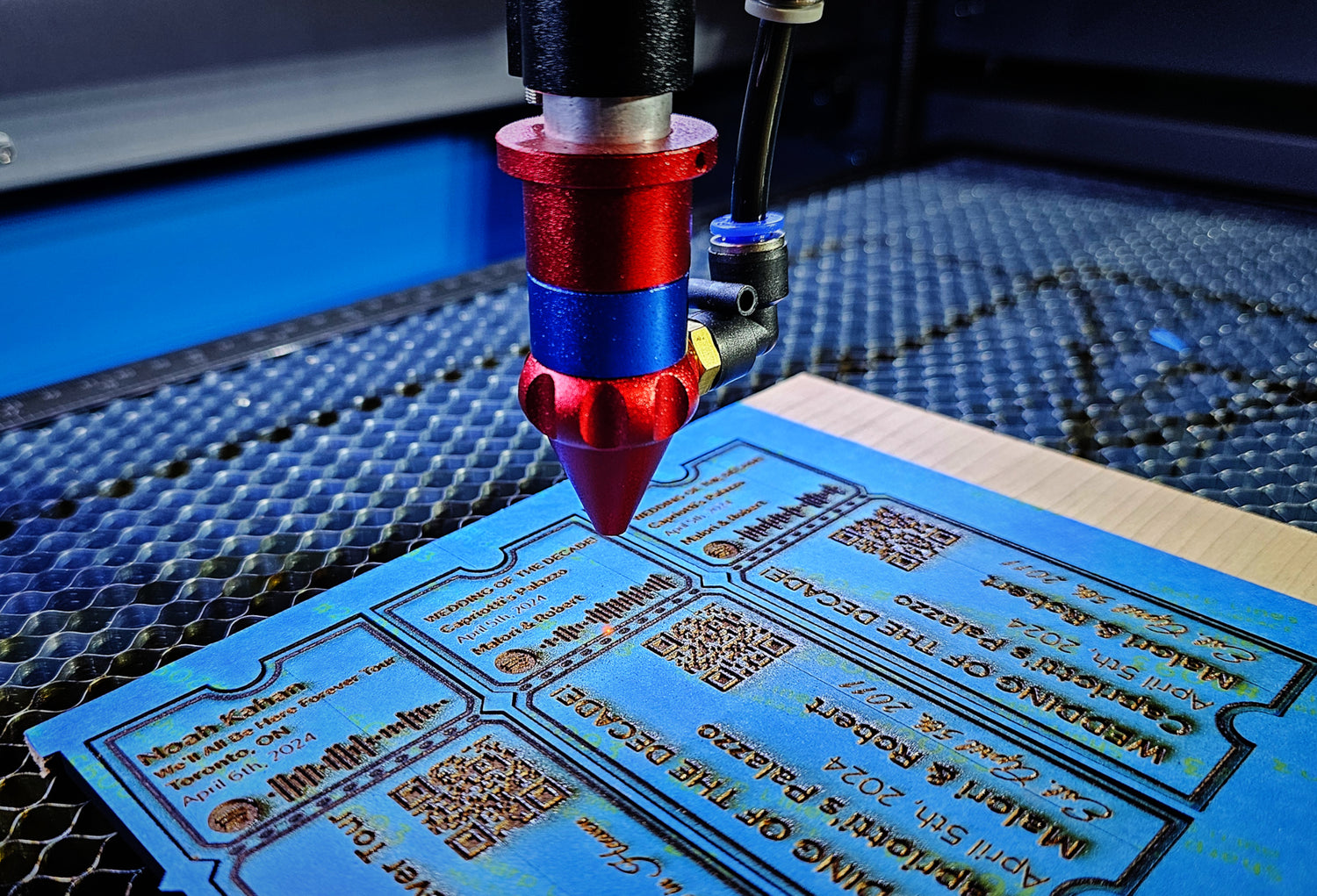 When you need to cut or engrave wood, leather, or acrylic, or etch precise designs into glass, Down Moon's 80w gantry laser is fast and incredibly accurate