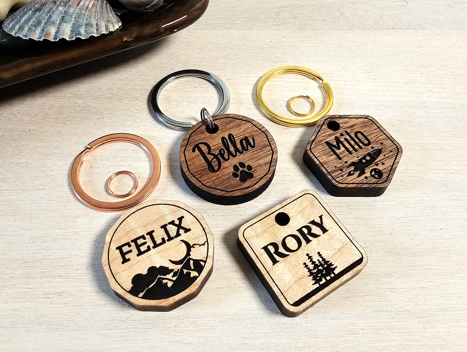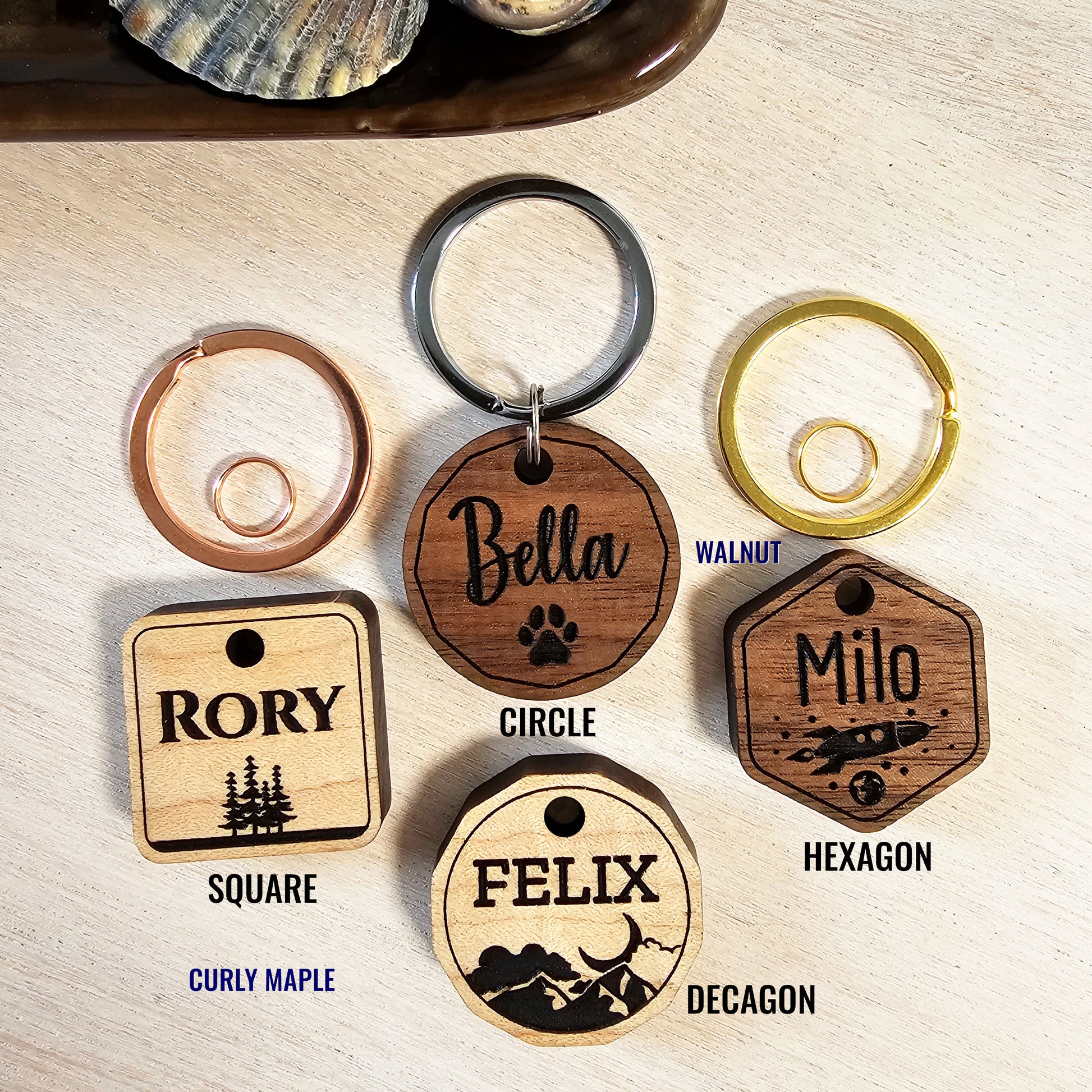 Custom Wood Pet ID Tag for Dog or Cat Collars