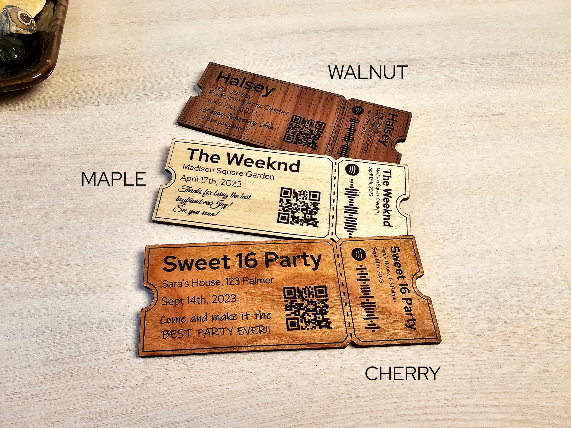 Wooden Event Concert Ticket - Custom Personalized Gift Reveal Ticket with Song Codes
